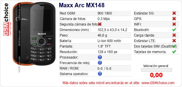 Datos del móvil Maxx Arc MX148 en tu página