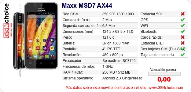 Datos del móvil Maxx MSD7 AX44 en tu página