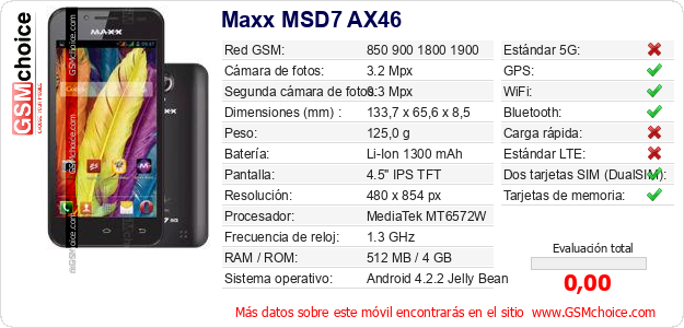 Datos del móvil Maxx MSD7 AX46 en tu página
