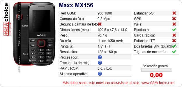 Datos del móvil Maxx MX156 en tu página