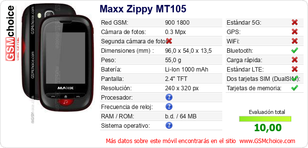 Datos del móvil Maxx Zippy MT105 en tu página