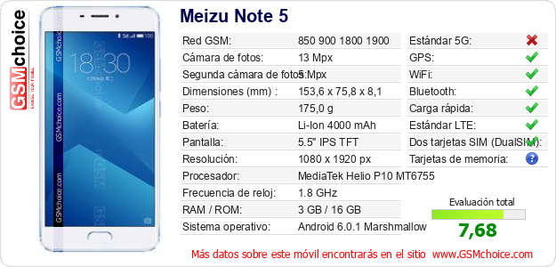 Datos del móvil Meizu Note 5 en tu página