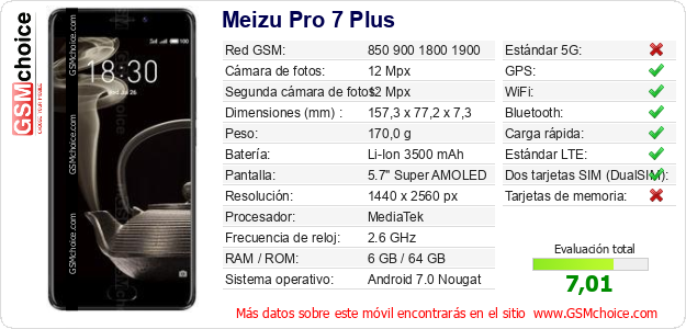 Datos del móvil Meizu Pro 7 Plus en tu página