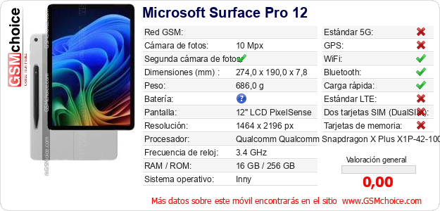 Datos del móvil Microsoft Surface Pro 12 en tu página