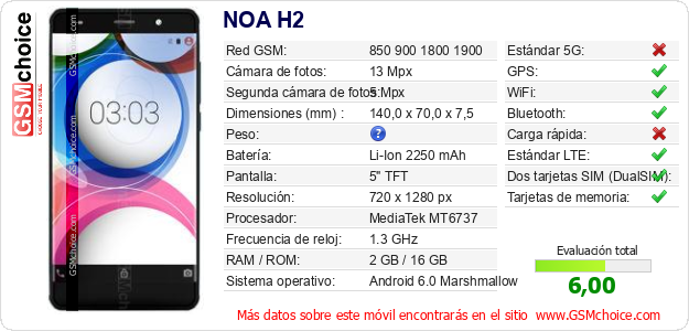 Datos del móvil NOA H2 en tu página