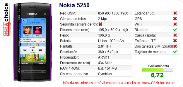 Datos del móvil Nokia 5250 en tu página