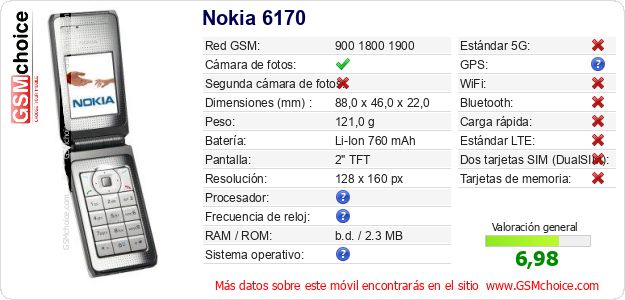 Datos del móvil Nokia 6170 en tu página