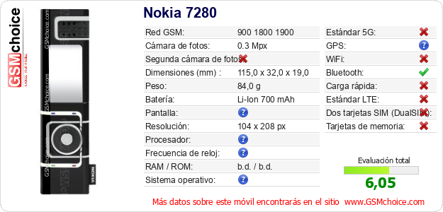 Datos del móvil Nokia 7280 en tu página
