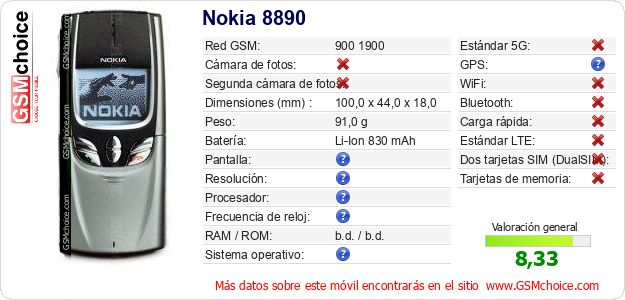 Datos del móvil Nokia 8890 en tu página