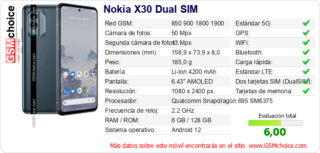 Datos del móvil Nokia X30 Dual SIM en tu página