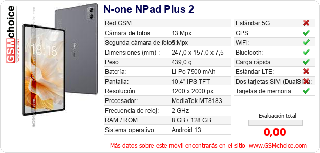 Datos del móvil N-one NPad Plus 2 en tu página