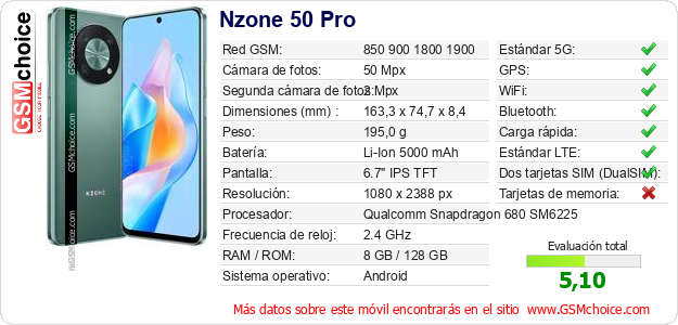 Datos del móvil Nzone 50 Pro en tu página