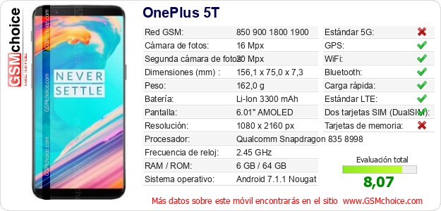 Datos del móvil OnePlus 5T en tu página