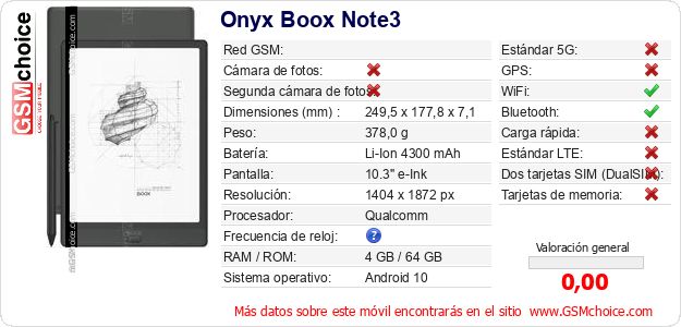 Datos del móvil Onyx Boox Note3 en tu página