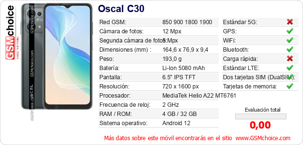 Datos del móvil Oscal C30 en tu página