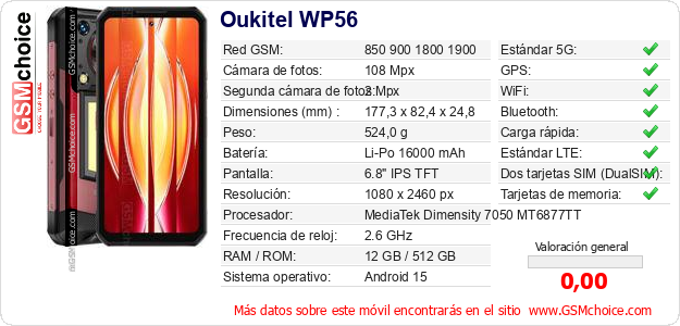 Datos del móvil Oukitel WP56 en tu página