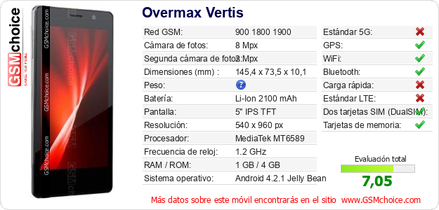 Datos del móvil Overmax Vertis en tu página