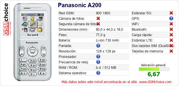 Datos del móvil Panasonic A200 en tu página