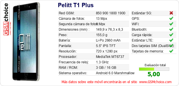Datos del móvil Pelitt T1 Plus en tu página