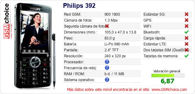 Datos del móvil Philips 392 en tu página
