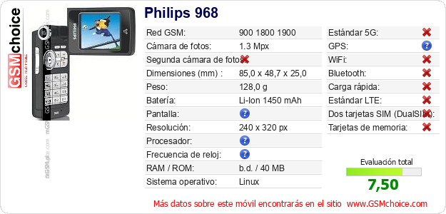Datos del móvil Philips 968 en tu página