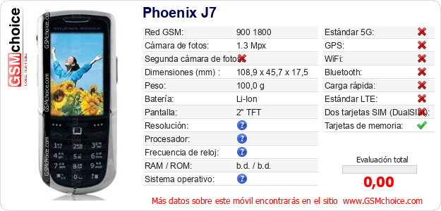 Datos del móvil Phoenix J7 en tu página
