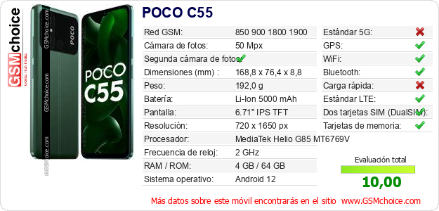 Datos del móvil POCO C55 en tu página