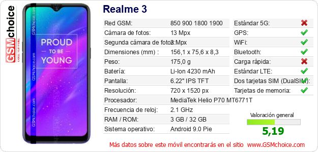 Datos del móvil Realme 3 en tu página
