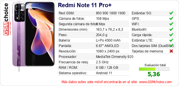 Datos del móvil Redmi Note 11 Pro+ en tu página