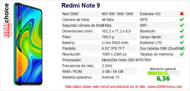 Datos del móvil Redmi Note 9 en tu página