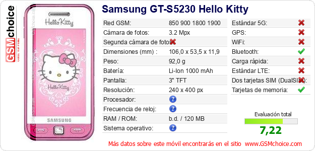 Datos del móvil Samsung GT-S5230 Hello Kitty en tu página