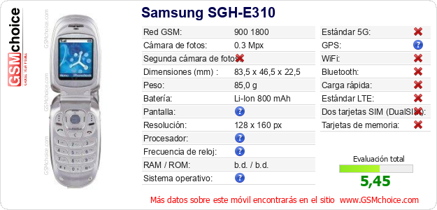 Datos del móvil Samsung SGH-E310 en tu página