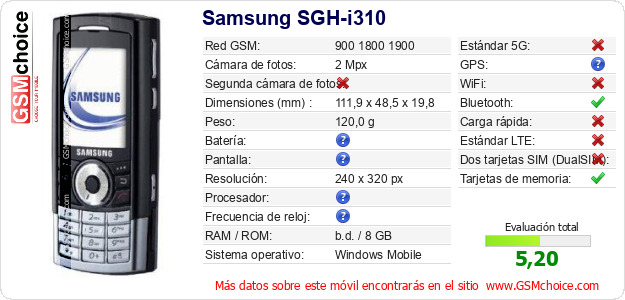 Datos del móvil Samsung SGH-i310 en tu página