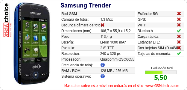 Datos del móvil Samsung Trender en tu página