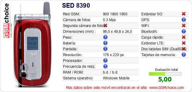 Datos del móvil SED 8390 en tu página