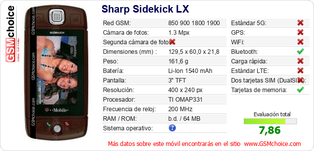 Datos del móvil Sharp Sidekick LX en tu página
