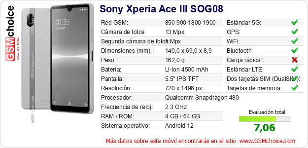 Datos del móvil Sony Xperia Ace III SOG08 en tu página
