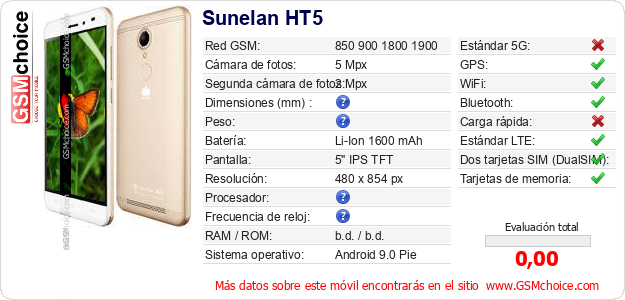 Datos del móvil Sunelan HT5 en tu página