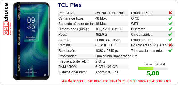 Datos del móvil TCL Plex en tu página