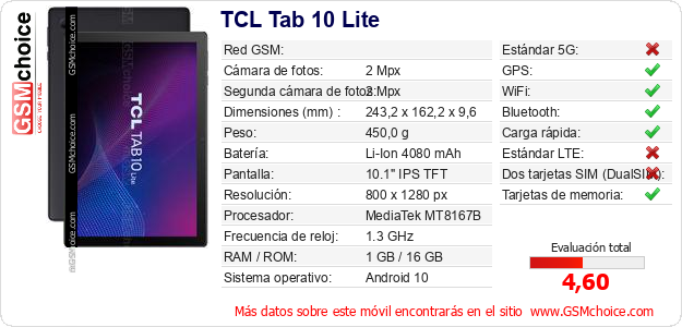 Datos del móvil TCL Tab 10 Lite en tu página