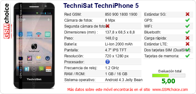 Datos del móvil TechniSat TechniPhone 5 en tu página