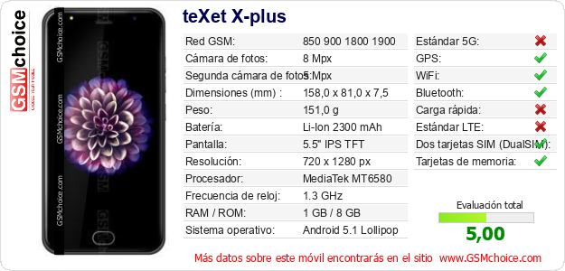 Datos del móvil teXet X-plus en tu página