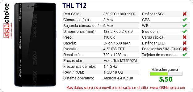 Datos del móvil THL T12 en tu página