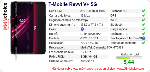 Datos del móvil T-Mobile Revvl V+ 5G en tu página