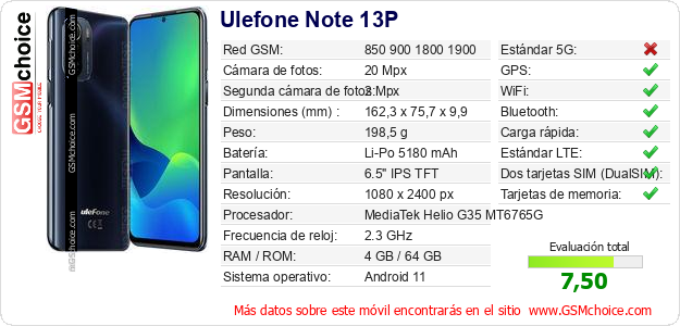 Datos del móvil Ulefone Note 13P en tu página
