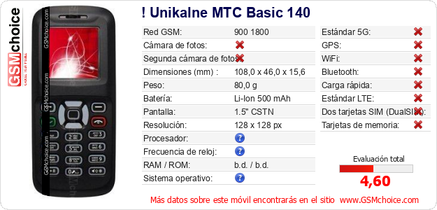 Datos del móvil ! Unikalne MTC Basic 140 en tu página
