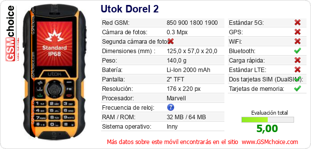 Datos del móvil Utok Dorel 2 en tu página