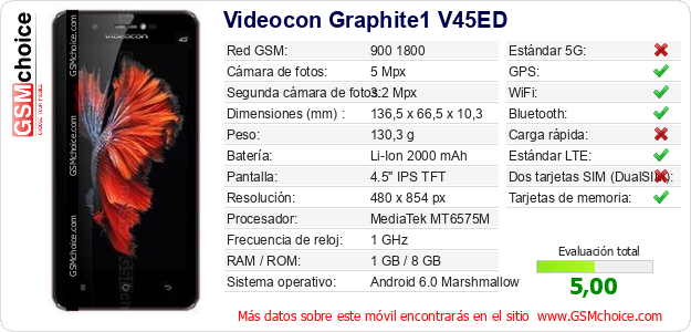 Datos del móvil Videocon Graphite1 V45ED en tu página