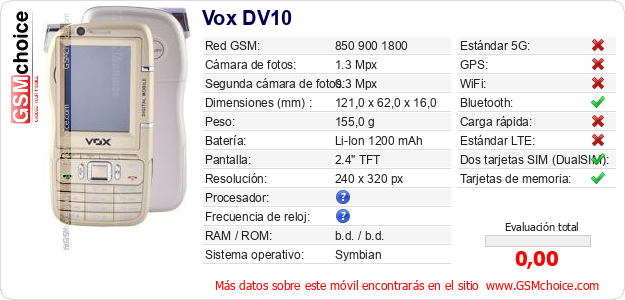 Datos del móvil Vox DV10 en tu página