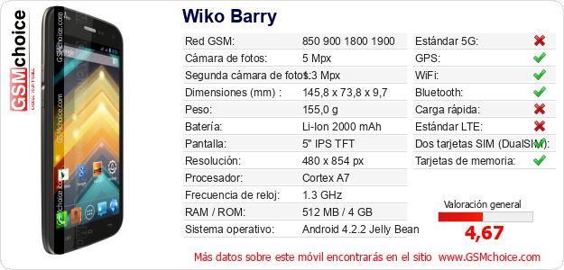 Datos del móvil Wiko Barry en tu página